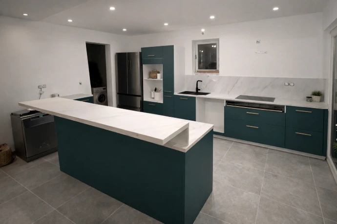 Nous intervenons aussi bien sur des projets entièrement pris en charge que sur des cuisines achetées chez un cuisiniste, avec un accompagnement technique et une pose professionnelle.
