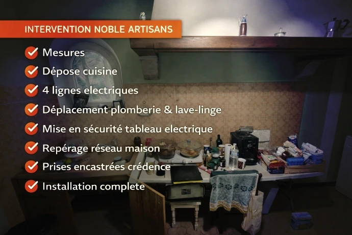 Avec électricien, plombier et artisans coordonnés pour une transformation complète.