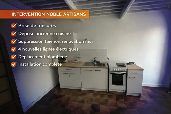 Avec électricien, plombier et artisans coordonnés pour une transformation complète.
