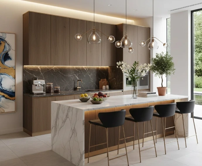 Une implantation réfléchie, des plans sur mesure et une sélection précise de la cuisine, de l’électroménager et des matériaux, alignée avec vos usages réels et votre budget.