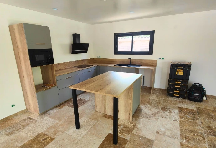 Nous intervenons aussi bien sur des projets entièrement pris en charge que sur des cuisines achetées chez un cuisiniste, avec un accompagnement technique et une pose professionnelle.